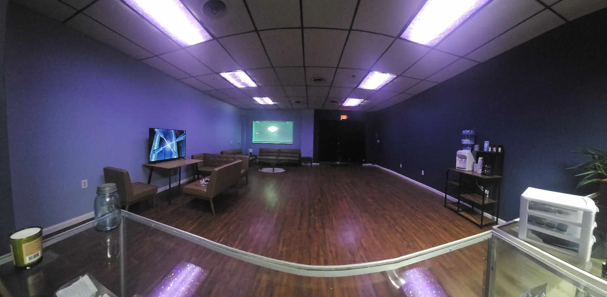 The Hemp Connection is a relaxed, cozy space designed for comfort and socializing. It features soft seating, coffee tables, and ambient lighting. The atmosphere is informal, inviting guests to unwind, chat, or enjoy light refreshments while partaking in quality hemp derived goods.